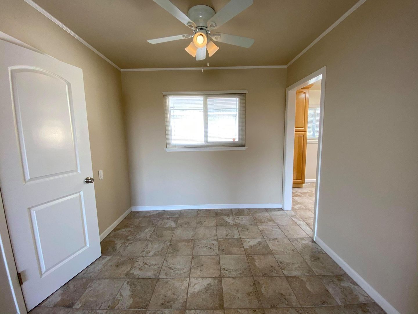 Eat in dining area off kitchen with ceiling fan