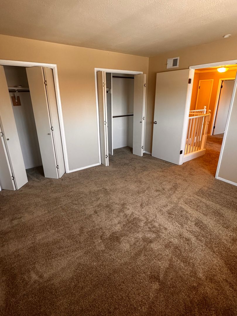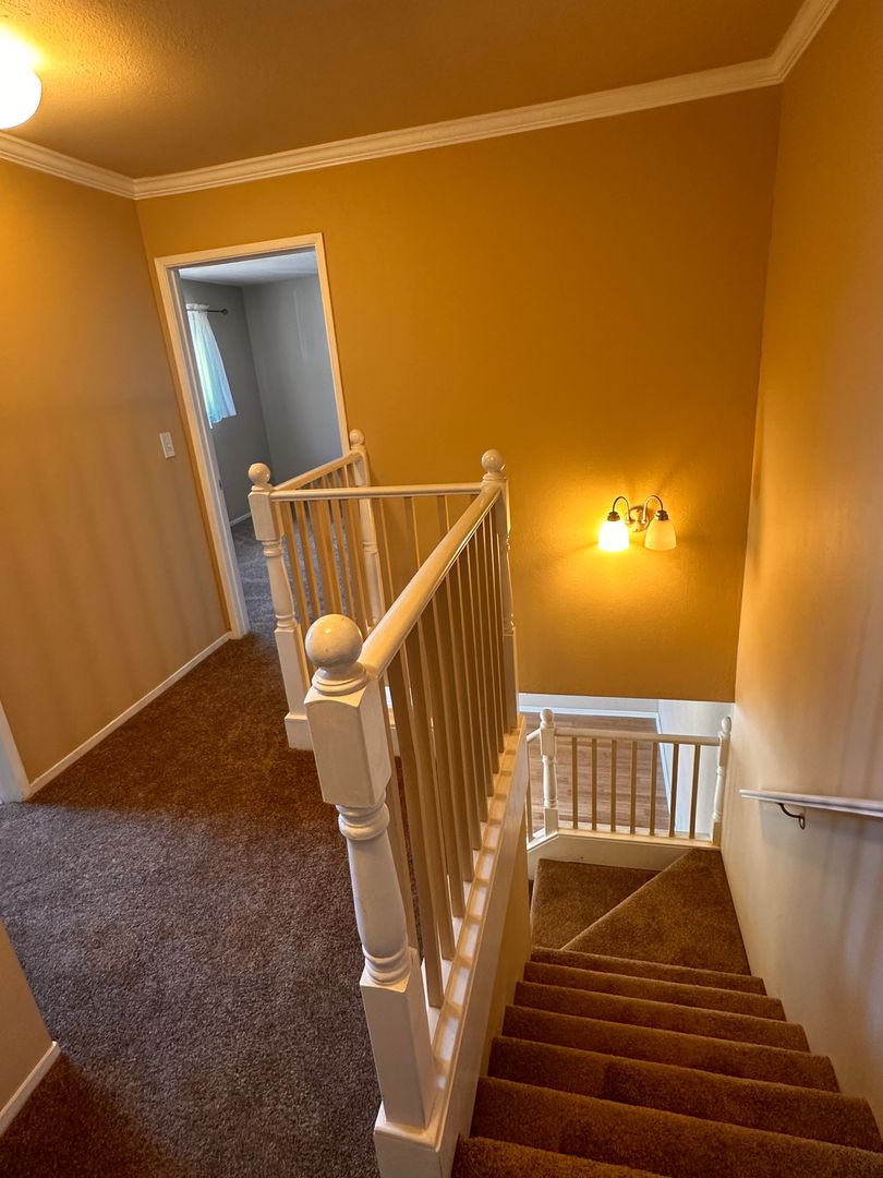 Downstairs features 1/2 bath, hardwood floors, while upstairs boasts all-new carpeting, 2 large bedrooms, and a full bathroom