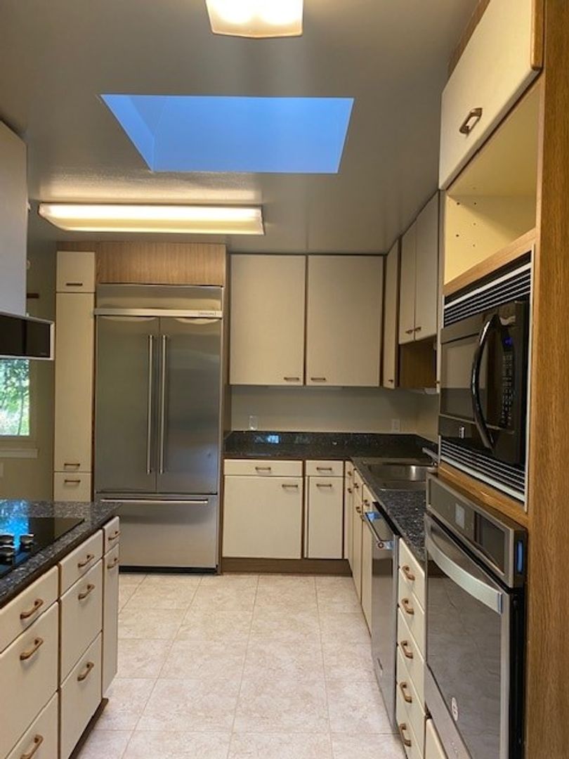 Eat-in kitchen complete with built in refrigerator, oven, microwave, dishwasher, electric stove and indoor BBQ