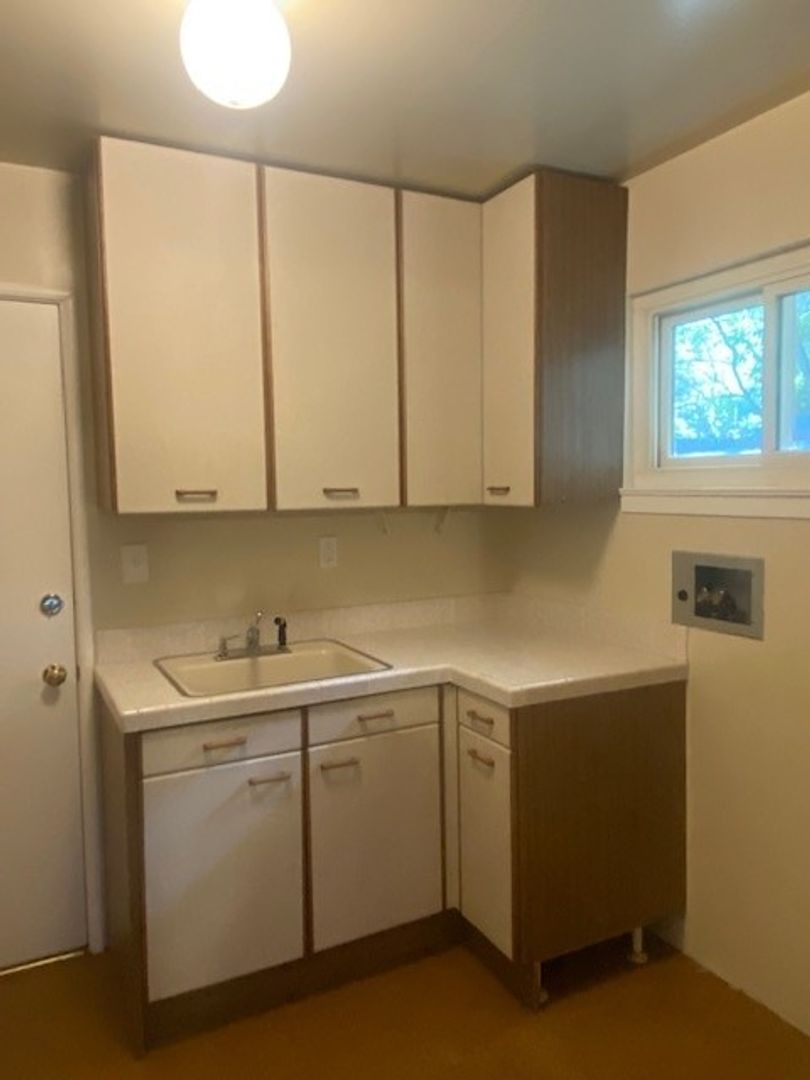 Laundry room with sink and abundant cabinet space, laundry hook ups only